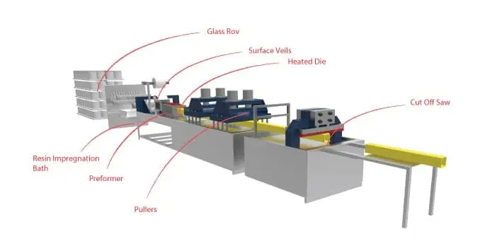 The ArchitEX™ scope of products provides a variety of structural profiles that are manufactured from fibreglass reinforced plastic (FRP) through a pultrusion process (see below). It is through continual research and development that the wide range of fibreglass sections, beams, and profiles are fabricated consistently to ensure satisfactory results even in challenging structural conditions.