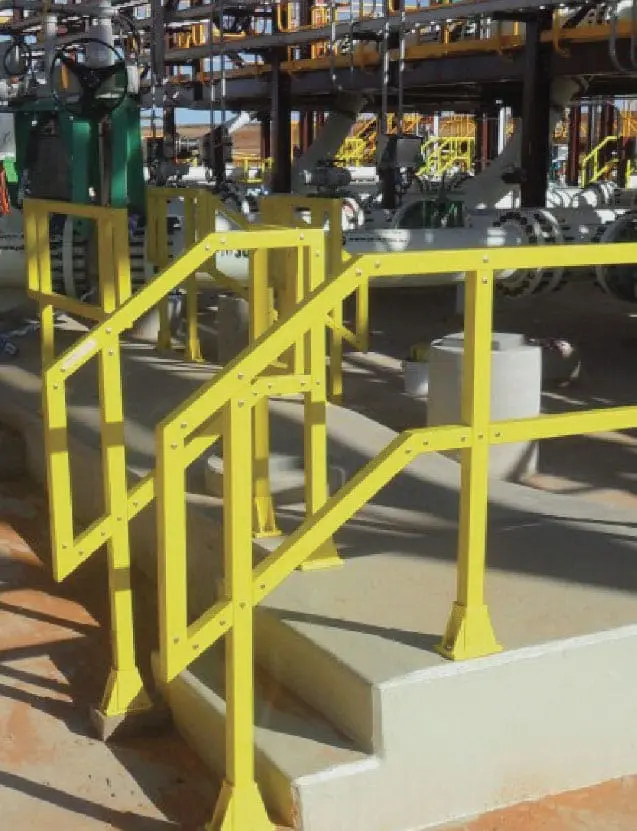 RailEX® SQUARE handrails features the benefit of eliminating the need for metal fasteners with our square tube insert fittings which immediately hastens the assembly process. In line with the list of advantages that FRP brings, Treadwell’s FRP handrails are great for corrosive environments. Further, simple tools have been designed with installation in mind – without the need for hot works permits, simply cut the tube, slide in the inserts, resin together and let it set.