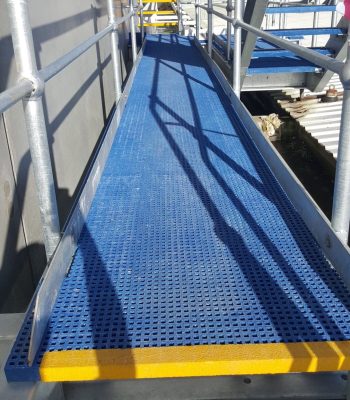 For this project, the client selected a blue colour for the grating, adding a unique aesthetic appeal. This highlights how FRP can be tailored to meet specific requirements while offering superior environmental resistance.