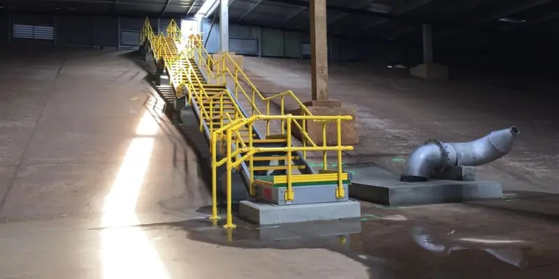 Corrosion poses a significant threat to submerged structures. For this access staircase, which is periodically submerged in a potable water treatment plant’s reservoir, traditional materials were unsuitable. To guarantee structural longevity, we developed a specialised resin system for its FRP components. The staircase also complies with Australian Standard 1657.