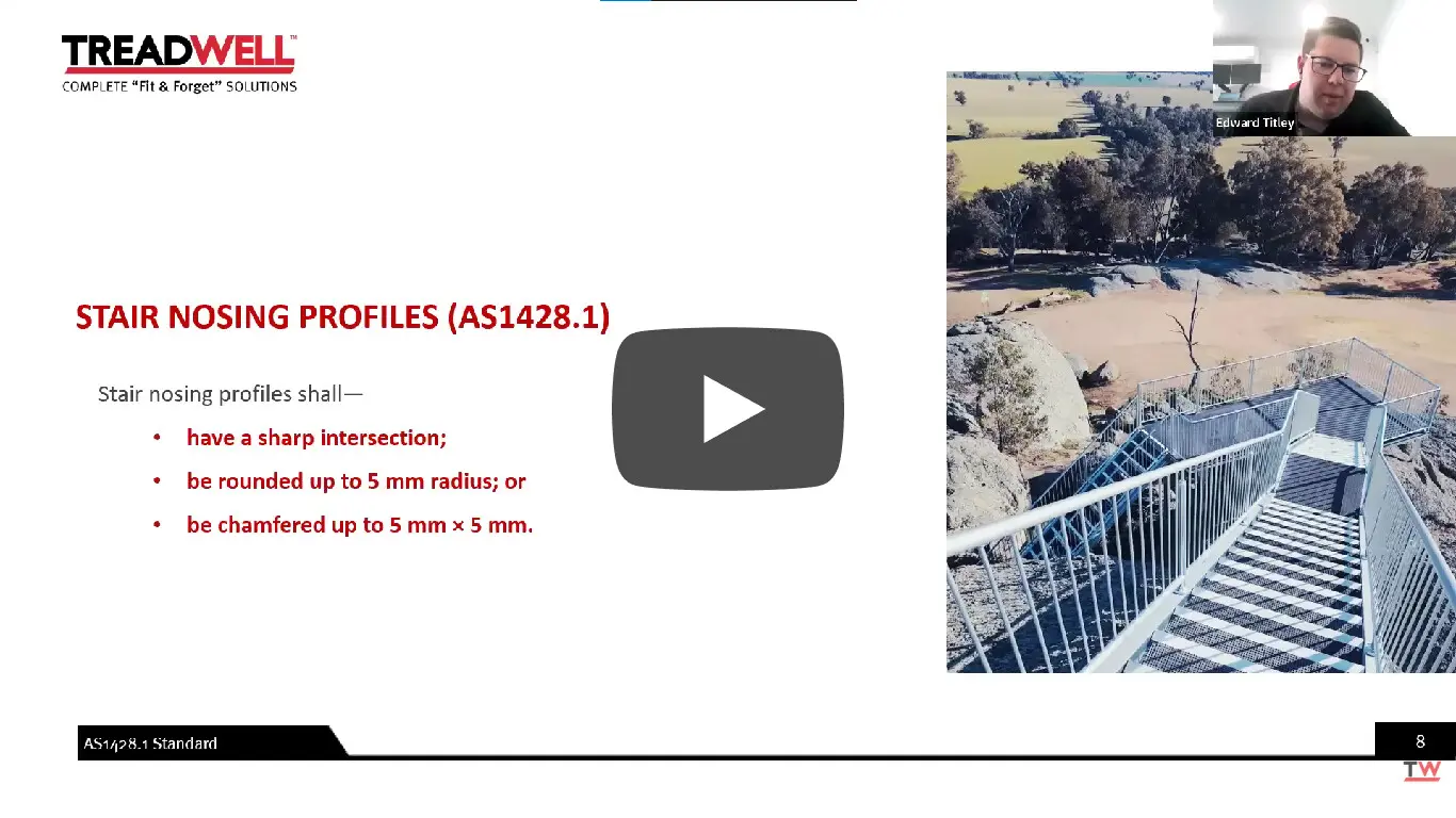 Stair nosing requirements in AS1428, AS1657 and NCC
