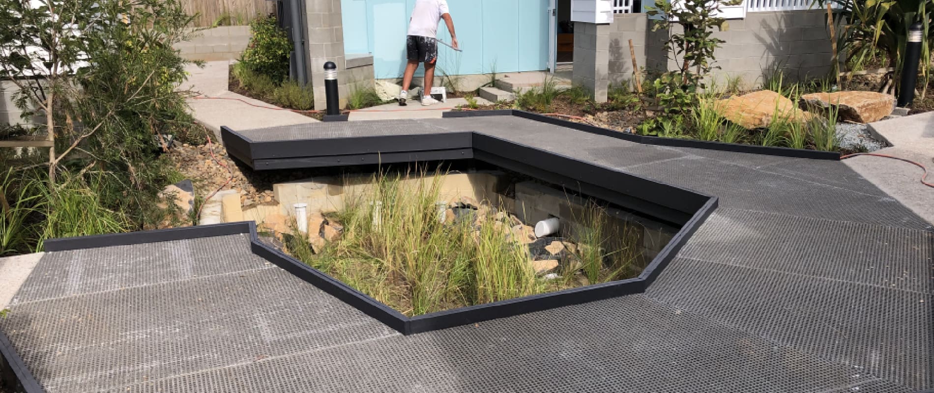 - The openings on Treadwell’s GratEX® FRP Mini Mesh Grating are tiny enough to be safe for high heels, and allows ventilation for the natural vegetation.
