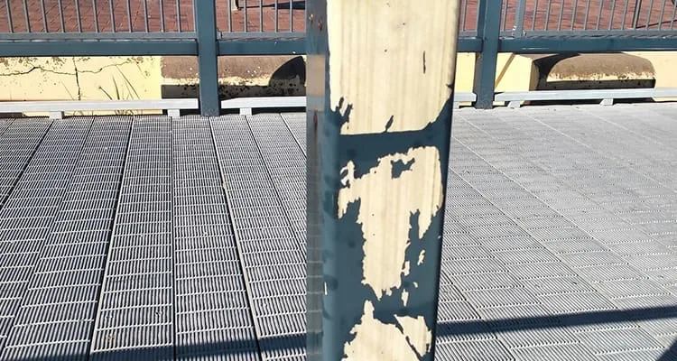 This is a prime example of an outdoor structure constructed using FRP, and a coat of paint to protect the structure from exposure. Resources will need to be expanded for regular maintenance of the surface coating. The lack of surface protection exposes the material to eventual disintegration.