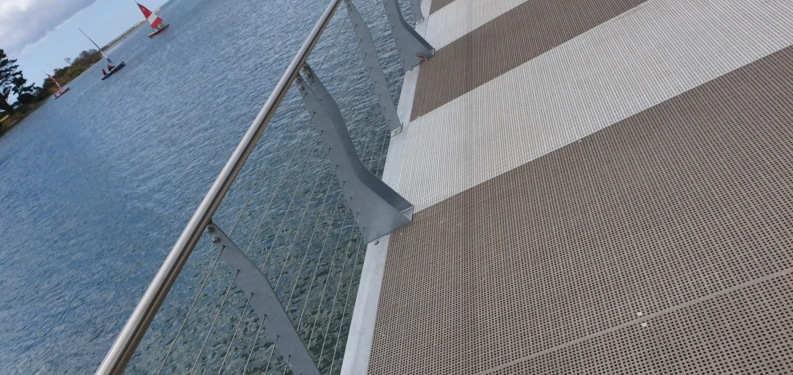 • Being installed over a body of water, the decking needed to be fastened in place from the top.